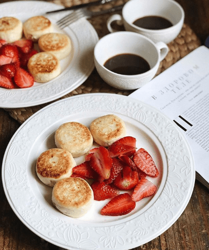 Смажимо на середньому вогні (на маленькому – розпливутся, на великому – НЕ прожаряться). До золотистого кольору) Подаємо з медом, ягодами і йогуртом.