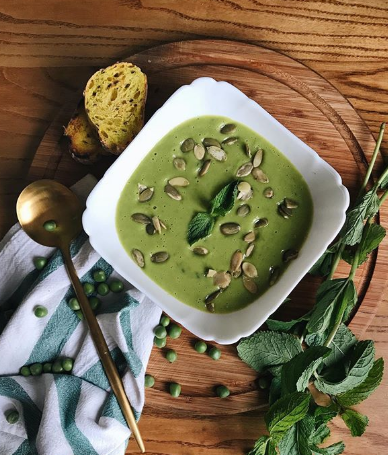 На порцію: – 1 ст. свіжого зеленого горошку; – часник, цибуля, морква – небагато; – вода; – м’ята.